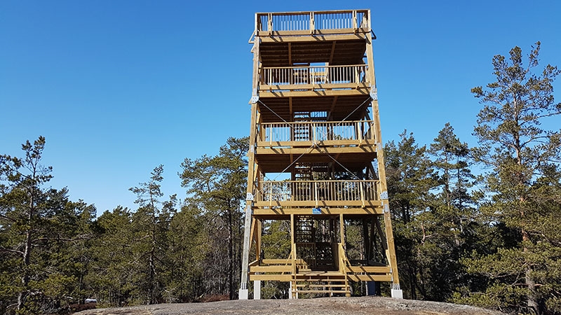 Finns slingor från 5 km upp till ca 15 km. De allra yngsta kan gå eller springa ca 1 km in till sjön Trehörningen. Rekommenderar att ta vägen förbi Tornberget som med sina 111 meter över havet är Stockholms läns högsta naturliga berg. Fantastisk utsikt från det nya Utsiktstornet.